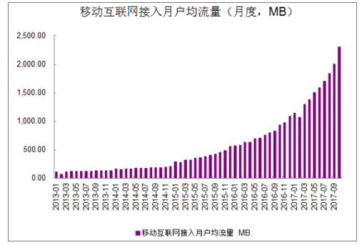 4G用户数迅猛增加:截至2017年10月,我国4G用户数达9.62亿户,渗透率达68.54%。人类对网络的需求持续扩大,(固网+无线)互联网流量持续以40%以上的复合速率爆发式增长,拉动信息基建持续投资。
