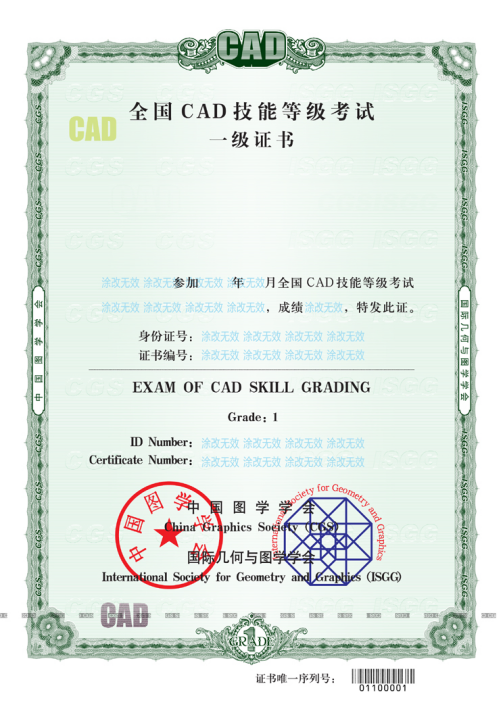 示例:国家级CAD技能一级证书