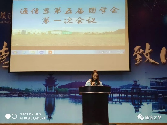 唱完歌后,团学会主席付洋发言表达了对团学会全体成员的感谢和今后工作的期望,团学会办公室主任黎颖宣读了每个部门的职责。紧接着,易主任和主席团成员依次给所有团学会干部颁发聘书。聘书发放完毕后,全体起立,团学会副主席刘彪带领大家一起宣读通信工程公司员工干部誓词。紧接着,宣传部部长吴兴丽,女生部副部长刘畅,卫生部干事万智利分别对自己的现期工作做了总结,也说了自己在工作中的所得所感和今后工作的期望。