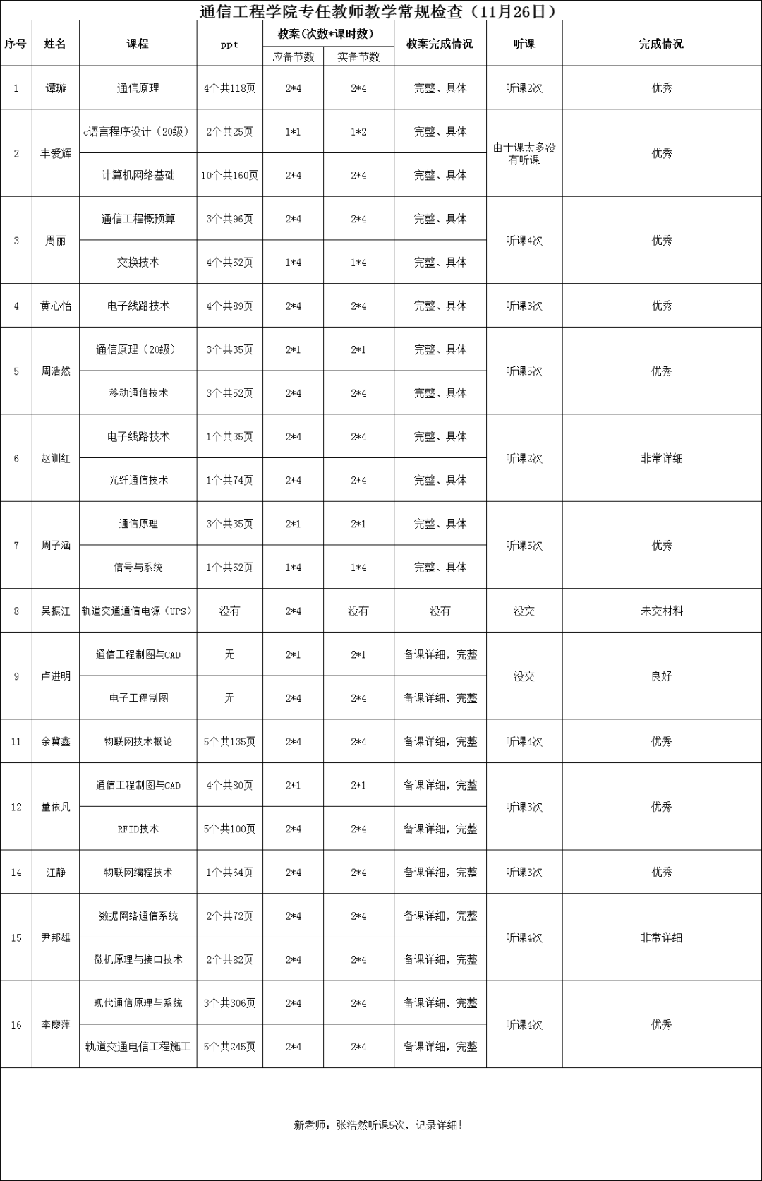抓常规,促规范,共发展|第13周超星学习通检查暨11月份教案检查情况公示