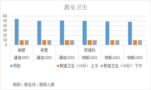 从表中可以看出,通信1901班、通信1902班、物联1901班、物联1902班、城轨1901班、城轨1902班、扣分情况有待提高,其他班级表现良好。希望各班辅导员和卫生委员加强管理,继续保持教室卫生,让教室更加干净整洁,有个好的学习氛围。